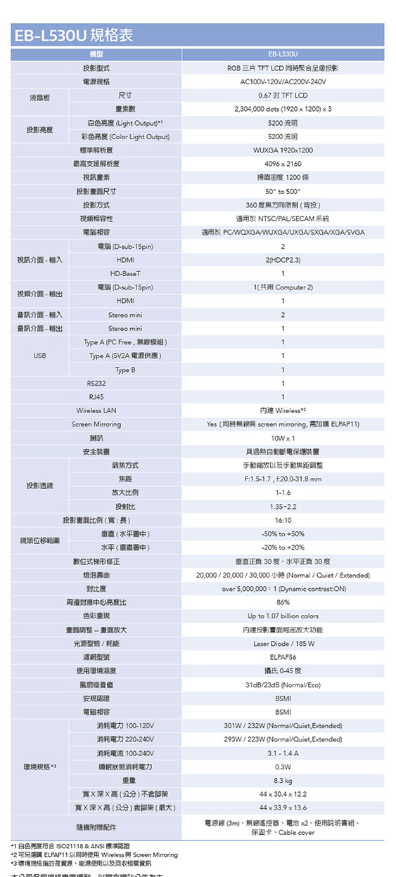 投影機 EPSON / Full HD雷射式(WUXGA)