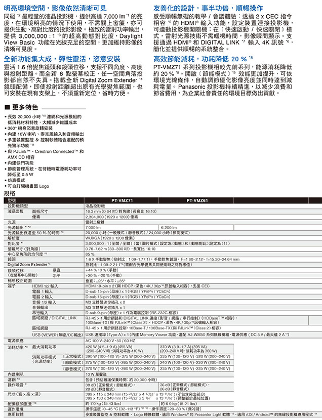 投影機 Panasonic / 雷射投影機(可攜式)